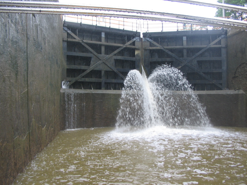 I think this is lock 32- all locks have some leaks around the gates, but this