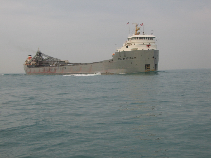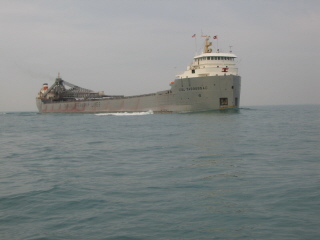 to Lake Erie I passed this lake freighter. This is a typical lake self-unloader. I