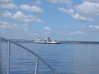 I do have a couple boat problems. The Autopilot will not hold a steady course, it swings rather wildly. I fiddled with adjustments for a long time and finally got it to an acceptable level, but its still not right. I also belive the rudder position sensor is not working. I tried to call Raymarine on the cell, and got the usual menu of options, followed by a recording that the que was curently 20 minutes. I think it will work well enough for the Lake Huron run.