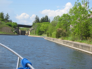 I made my first fuel stop at Bellville for CDN$ 194.97, for 197.5 liters. Thats 52.2 gals, and a total engine time of 28.9 hours, or about 1.8 gal/hr. That is just about what I expected.