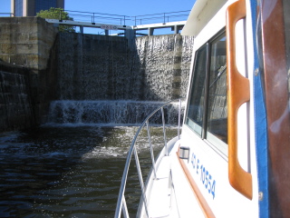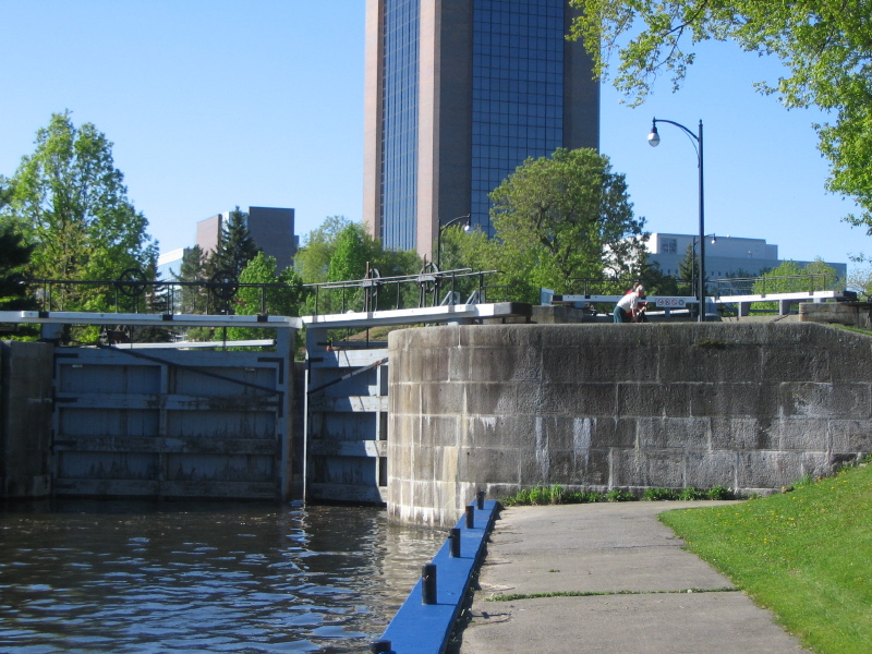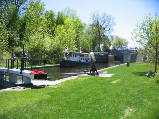 The lock keepers everywhere have been very friendly and helpful, but at Hogs Back, keeper Guy Theriault, was exceptionally helpfull, explaining a lot of the details about the lock and the surronding area. He even gave us Rideau Canal hat pins. |