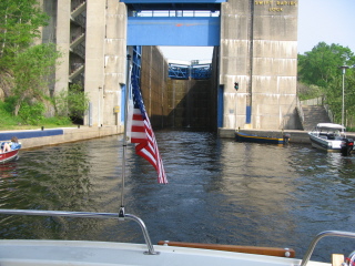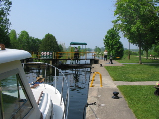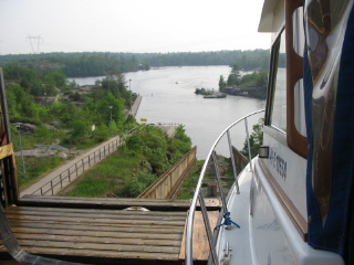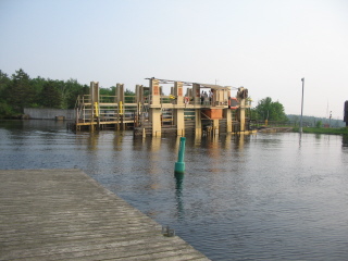 Out of Lake Simcoe and through the Narrows into Lake Couchiching. It was