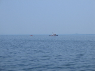 the shore in any direction. I passed this tug towing a boat in- a sobering