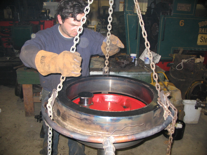 Once the tire is hot enough it is simply lowered onto the wheel.