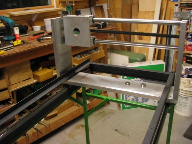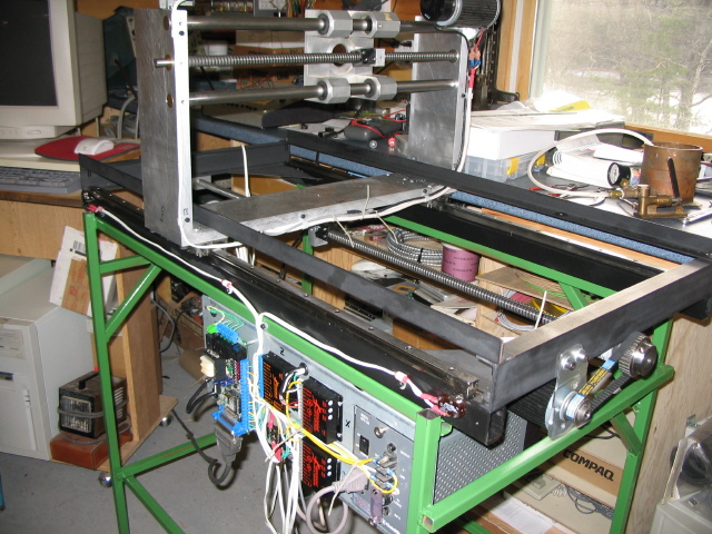 | Here most of the major moving parts of X and Y are assembled. The lead screws are in place and the servo motors mounted. | |