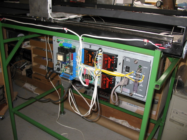 I used Geck drives, and a power supply I bought at a garage sale for $10. I also used a Pmdx breakout board. This was real handy to handle the limit switches and a relay to control the spindle motor. |