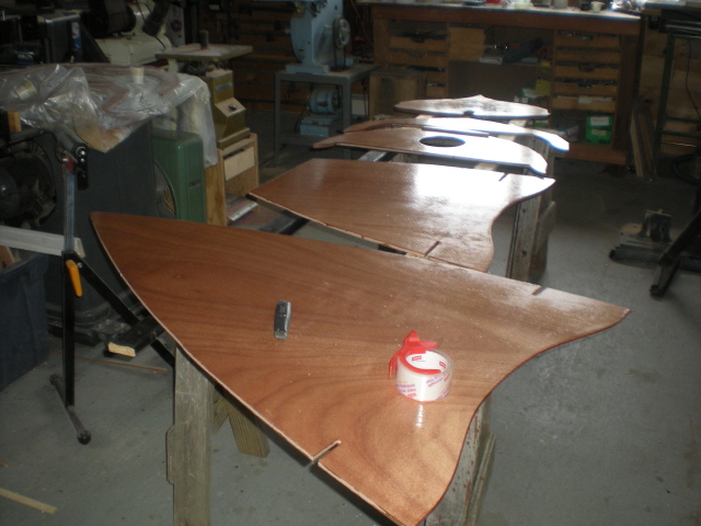 After several days I had all the flat parts of the boat, except the planks, coated and sanded and ready to use.