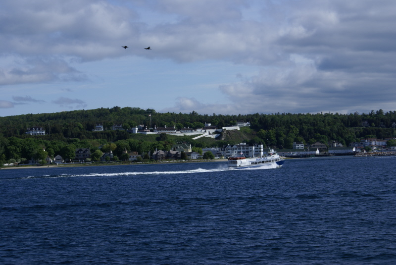 We found a motel in Mackinaw City for the night, then Took the ferry over to Mackinac Island off the Straights of Mackinac in Lake Huron. A view of Fort Mackinac on the hill and a another ferry heading to the island.