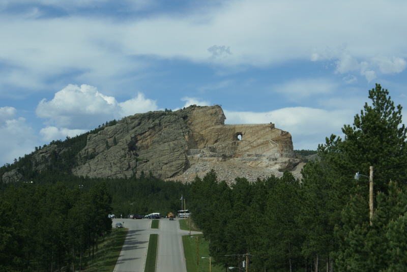 This shot shows the model with the mountain in the background. It will be very impressive if it ever gets finished. The four heads from Rushmore would fit under Crazy Horse's ear to give you an idea of scale.