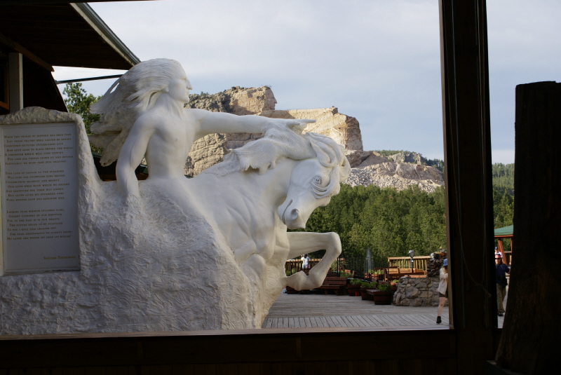 We had lunch in Custer, then headed back toward Keystone, for what was going to be an evening of relaxing. We had decided to skip the visitors center at Crazy Horse, since someone had told us it was $20 each to get in. But it turned out to be only $20 per car, so we went in. There was a large display area, with thousands of photos and signs. Bonnie read every one of them. The native American elders contacted the sculpter and asked him to take on the project. He believed so much in a memorial to a native leader that he worked alone for years under difficult conditions.