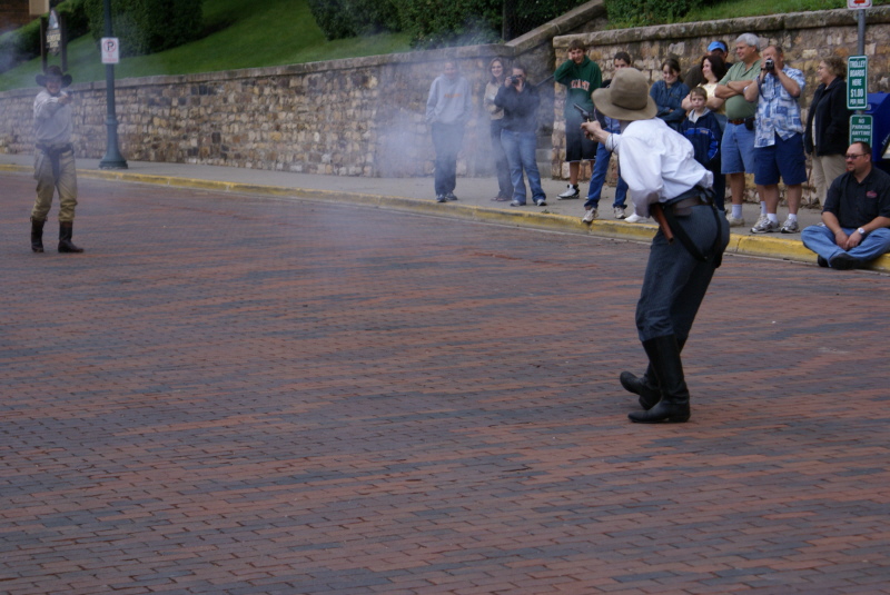They stage a gunfight to amuse the tourists, and we watched the shooting of Wild Bill Hitchcok.
