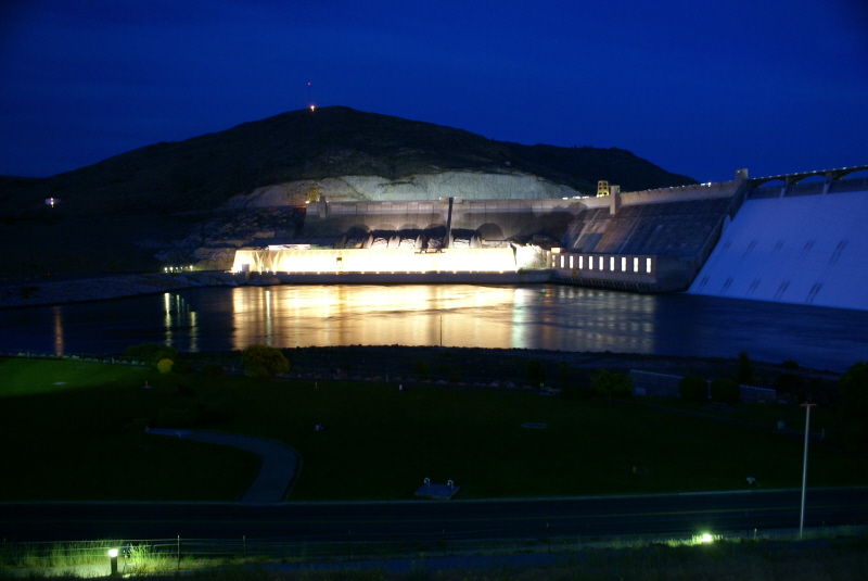 We noticed that Grand Coulee Dam was just down to the South a bit, so we decided to head down there. This is one big concrete block! 12,000,000 cubic yards of it. This is still the biggest power producing dam in the US, third in the world.