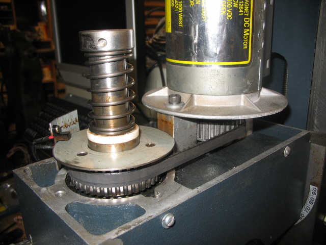 A more important change was to fix the drive motor. The factory motor is a big, noisy, open frame 240 volt motor. The US Importer mounts a transformer on top of the head to get the 240 volts. I removed that transformer and wired the motor direct to 240 volt.