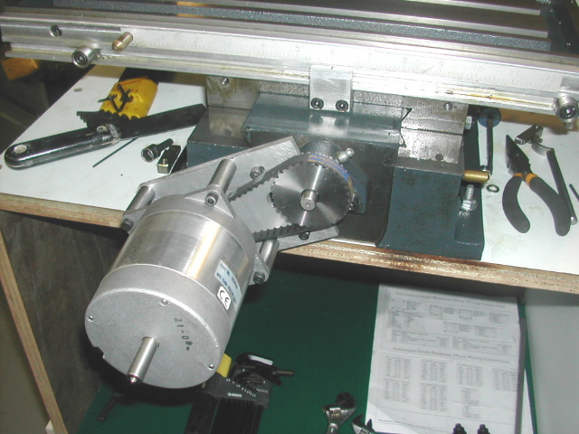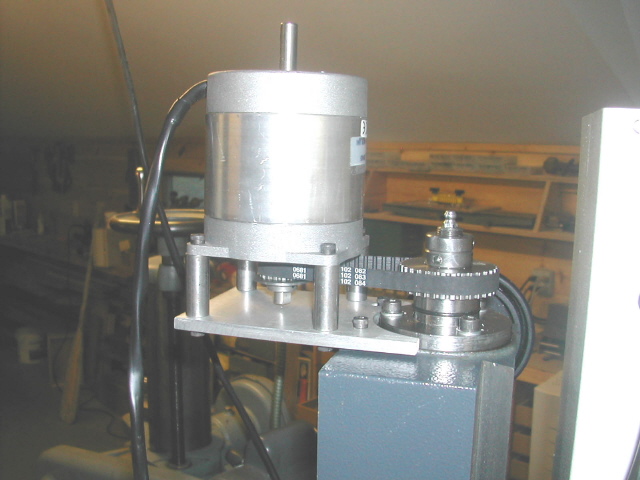 I replaced the motor with a DC 'treadmill' motor bought surplus. I also changed the pulley ratio to 1:1. I had to use anarrower drive belt for this, and I worry it will break, but I now have several hours of use and its still running fine. I also added a disk with a hole and an optical switch as a speed sensor. This is read my Mach3 software and provides an RPM display.