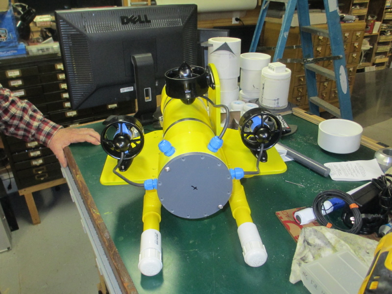 I tried a float test with disastrous results, due to a dumb mistake on my part. When I made the main hull I drilled a circle of holes around the end to hold on the end and press against the O-ring seal. I set the hole depth by measuring the thickness of the PVC sheet I had to make the end. But the clear plexi I used for the camera end was a bit thinner and the screws bottomed before applying pressure to the plexi. Simple solution, I ordered a box of SS washers to add under the screws, but when it came time to do the final assembly I forgot the washers. When we tried the float test the hull rapidly filled with sea water. I was so determined to see the thrusters run that I tried them for a few seconds.