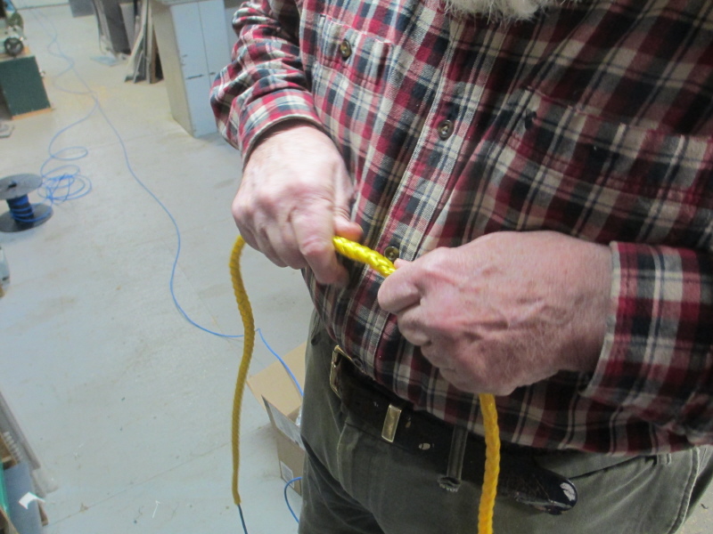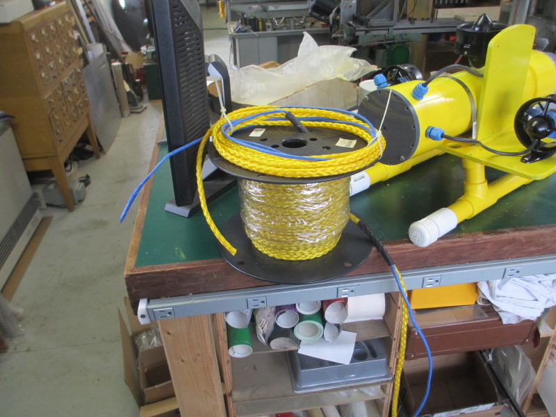 At the ends I split out the wire so I can have the rope tied to the ROV and to the boat and have the wire run out to the control. I will make a stand to hold this reel and have a crank on it to rewind the tether.