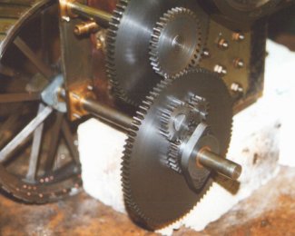 that drives the right wheel. The left wheel gear is keyed to the axle. It turns