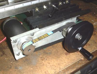 And a close up of the X and Y motor mount. Note the Y mount was made of thin sheet metal with a formed edge for stiffness, because the motor shaft was to short to allow a thicker plate.