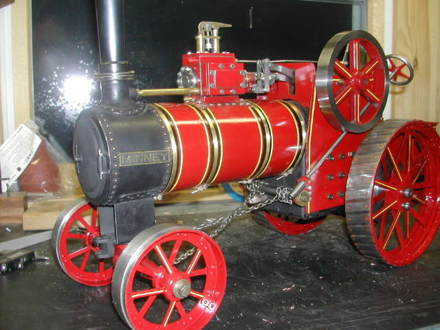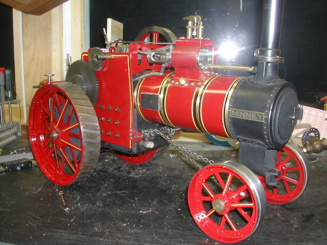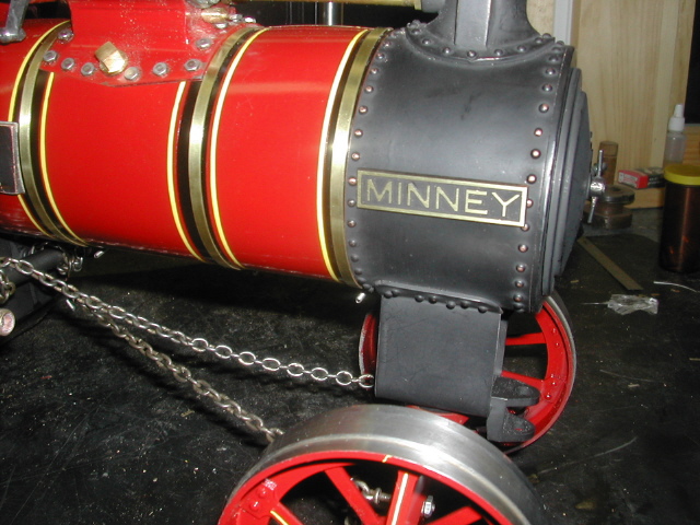 When I started collecting materials for MINNIE the only pipe I could find for the boiler was 3" dia, and the plans called for 2.5". I decided to scale the engine up 120%. I keept the engine parts to the original size, but have scalled up the boiler and wheels.