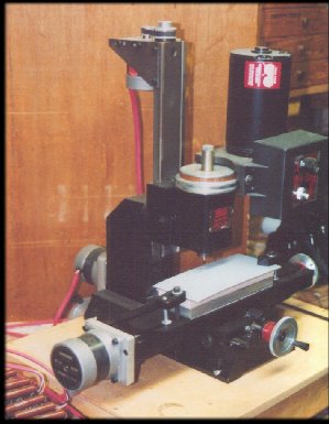 Update, December 2004 Several people have asked how I did the Moglice, so here is a brief description. The Moglice is thin enough to be injected from a plastic syringe. To hold the scews in place while its being injected I used the standard Sherline nuts. Each axis has two nuts- one is a cylinder, held into the saddle with a set screw from the top of the saddle. The other is the backlash adjuster nut, with the star wheel head, that you see on the exterior of the saddle.